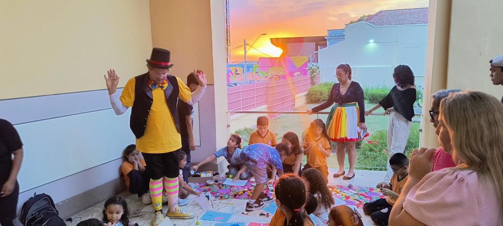 A programação também envolveu alunos do ensino fundamental da Escola Municipal Waldir Garcia, que participaram de atividades de contação de histórias, pinturas e dinâmicas culturais, fortalecendo a conexão entre educação, cultura e comunidade.
