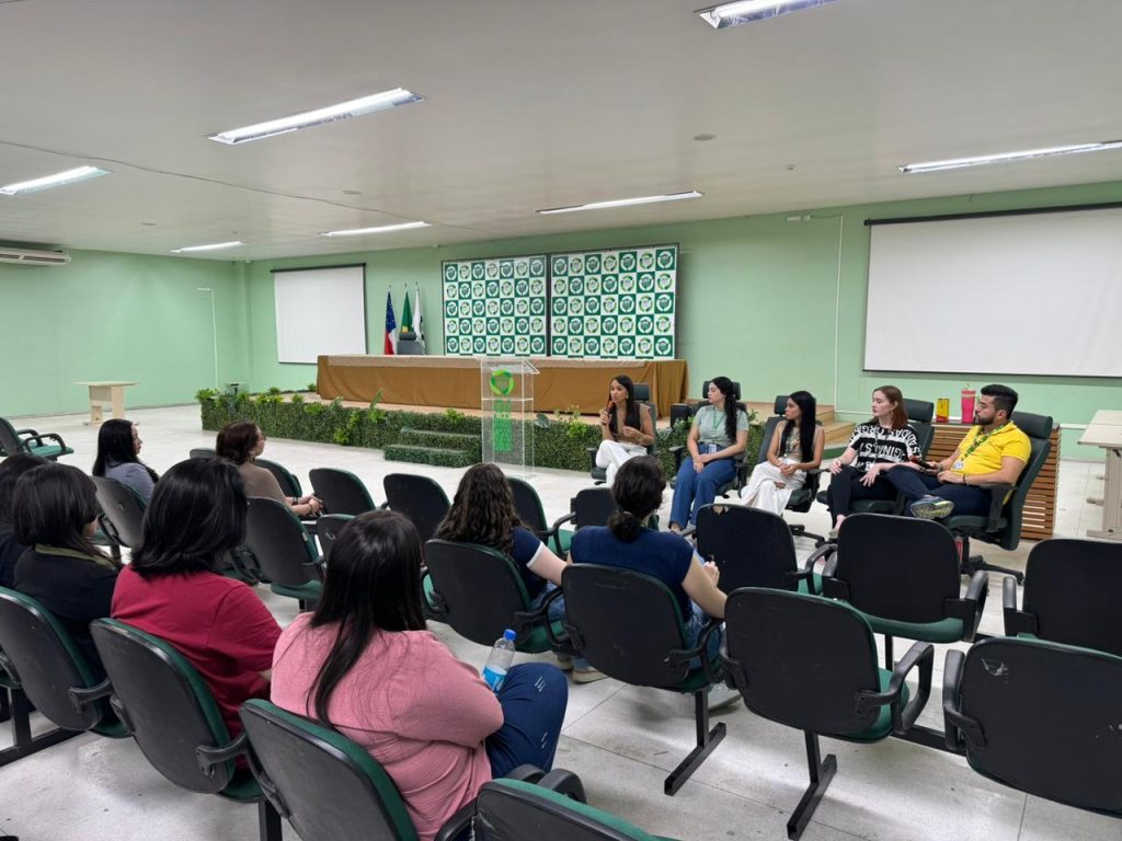 participação da nutricionista da PROEX/UEA, Luana Oliveira; da psicóloga Vitória Thaís; e das estudantes de psicologia Yasmin Farias e Maíra Moraes. Durante a roda, Luana Oliveira deu dicas sobre uma alimentação equilibrada voltada à promoção da saúde mental, enquanto as psicólogas abordaram estratégias de prevenção e manejo do estresse no ambiente de trabalho. Foram discutidos temas como equilíbrio emocional, hábitos saudáveis, comunicação assertiva e identificação de sinais de desgaste psicológico.