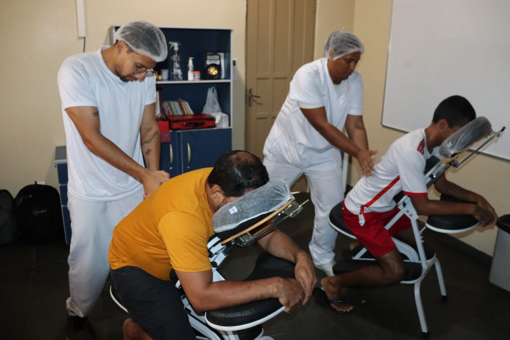 Além disso, foram ofertados serviços de massagem por meio de parceria com o Senac, promovendo momentos de cuidado, bem-estar e valorização dos participantes.