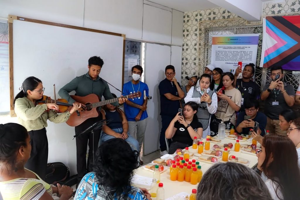 O encerramento da ação foi marcado por um momento de integração cultural, com apresentação dos alunos do Programa Musicando, da UEA/Esat, proporcionando um ambiente de acolhimento e valorização da diversidade por meio da música.