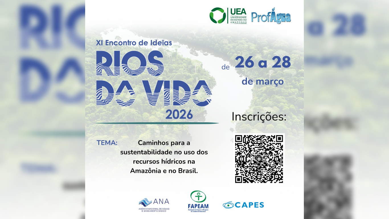 O Programa de Pós-graduação em Gestão e Regulação de Recursos Hídricos da Universidade do Estado do Amazonas (ProfÁgua/UEA) promove o XI Encontro de Ideias Rios da Vida. O evento acontecerá nos dias 26 a 28 de março, no auditório da Escola de Direito da UEA, na rua Major Gabriel, 767, Centro.