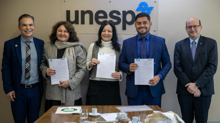 O pró-reitor de Pesquisa e Pós-graduação, Prof. Dr. Roberto Mubarac, e a coordenadora de Pesquisas…